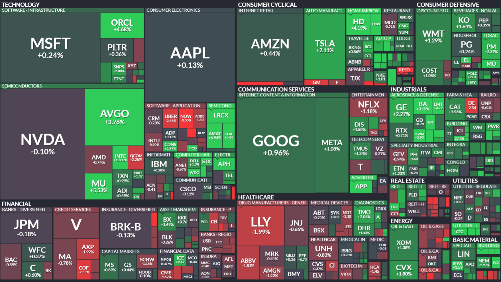 특히 반도체 섹터의 도약이 두드러졌다. TSMC가 예상을 웃도는 12월 매출 실적을 발표한 것이 기폭제가 되어 마이크론 테크놀로지(+5%), 브로드컴(+3%) 등이 강세를 나타냈다. 반도체 장비주인 램리서치(+8.66%), 어플라이드 머티어리얼즈(+6.94%), ASML(+6.66%) 등도 기업들의 투자 확대 기대감에 힘입어 큰 폭으로 올랐다. 필라델피아 반도체 지수는 2.7% 이상 상승하며 마감했다.